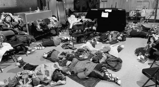 在33天时间里,孩子们每天9:30进央视排练,一直到晚上7点回到酒店。为了熟悉当天修改过的内容,他们还自己加练到深夜。而进入春晚带妆联排模式后,孩子们常常要等到凌晨一两点才可以开始进央视一号演播厅排练,“他们在后台穿着演出服横七竖八地睡觉,哨声一响,孩子们就马上蹦起来去排练。”程鹏举很多次,用手机记录下孩子们在后台睡觉的模样,想让他们在以后能看着照片,想起自己就是当年那个努力的少年。