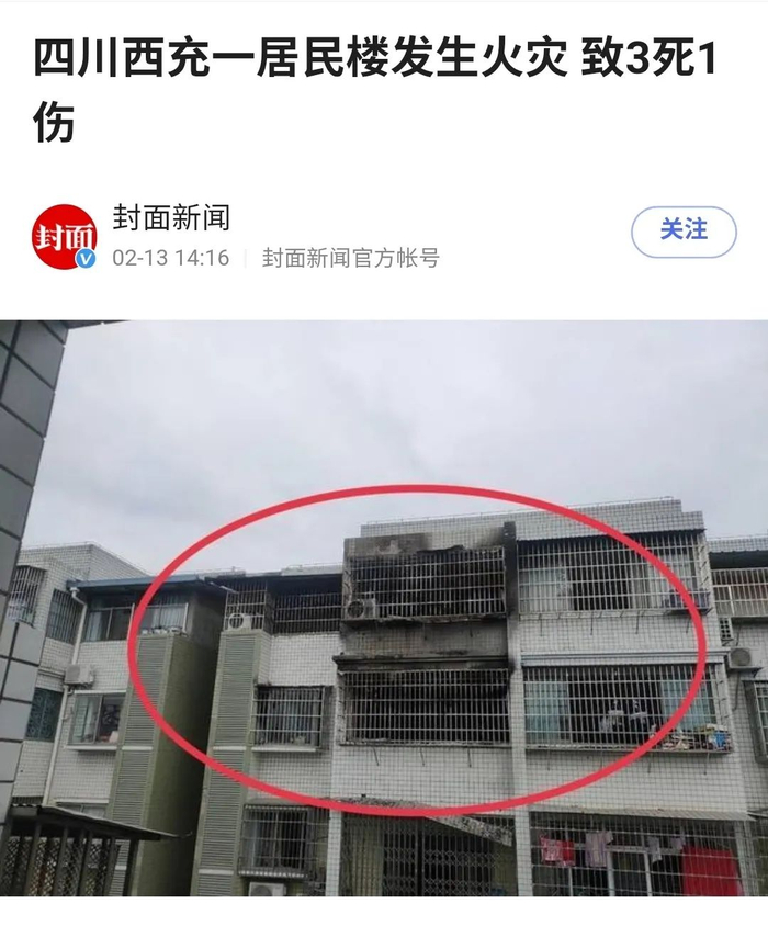 2月12日凌晨,四川省南充市西充县园林路一住宅发生火灾,造成3人死亡1人受伤。