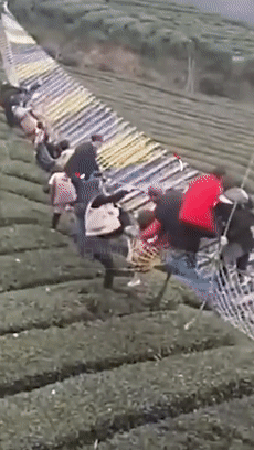 2月13日,湖北宜昌,一网红吊桥发生侧翻,多人掉落茶园。