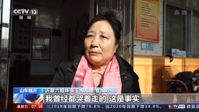 沂蒙六姐妹张玉梅儿媳崔加玲:我去求她,我说,多少你说一句话,他不能上下面去。然后俺婆婆说,咱不能给国家添麻烦,我不去说,你们在外面,闯得什么样是什么样。我真是哭着走的,这是事实。回去想想也是,俺这点儿困难还算困难?也就这样认了吧,一直俺对象还在前线(乡镇)上。