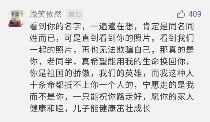 “看到你的照片,又一次泪奔!老同学,走好,为你自豪!”