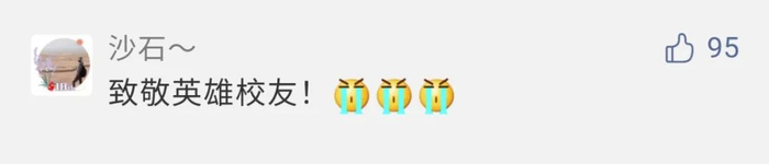 在高校官微留言区,网友纷纷向英雄致敬,“一张张照片,我看到了校友眼神的刚毅和坚定”。