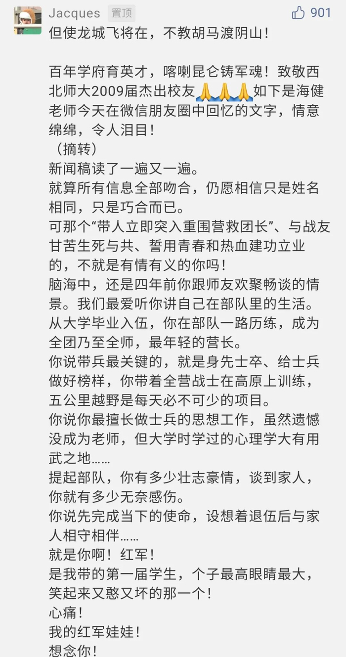 昨天,西北师大官微发文致敬英雄校友陈红军:卫国戍边英雄,永不褪色的界碑!