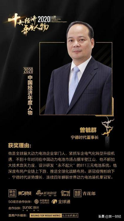 2月8日,由第一财经、新浪财经、吴晓波频道联合出品的“2020十大经济年度人物评选”,揭晓最终获奖企业家名单,我校1989届校友曾毓群上榜。