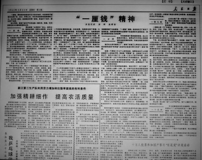 李峰与人合写的长篇通讯《“一厘钱”精神》发表在1963年3月24日出版的《人民日报》,引起社会强烈反响。