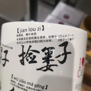 在这款长沙话主题马克杯上,茶颜悦色用了长沙俚语“捡篓子”来造句,称“来茶颜买奶茶的美女很多,如果你碰巧认识一个,你可以小声告诉我们的小伙伴:‘我捡了一个篓子’。”