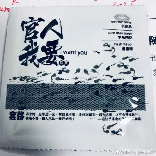 另外,在被曝文案内容不当的一款茶包上,茶颜悦色将“官人我要饮茶”的前四个字放大,并在旁边印上让人产生不好联想的符号。
