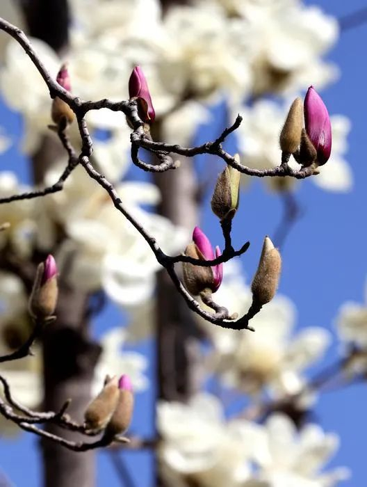 作为“报春使者”的迎春花,早早地就绽放了花朵,亮黄色的一抹,装点着古城每个角落,好像在提醒人们:春天已经到啦!
