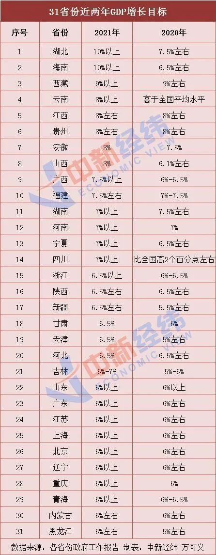 ●多省份上调今年GDP增长目标 湖北海南在10%以上