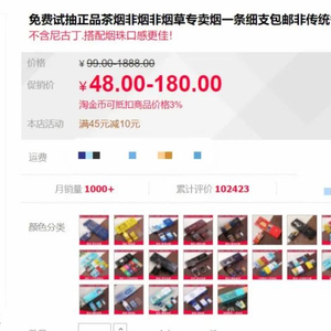 商家一般都会着重介绍,茶烟口感像传统香烟,但不含尼古丁和焦油,没有任何有害物质,价格便宜的一包三五元,贵的要五六十元。