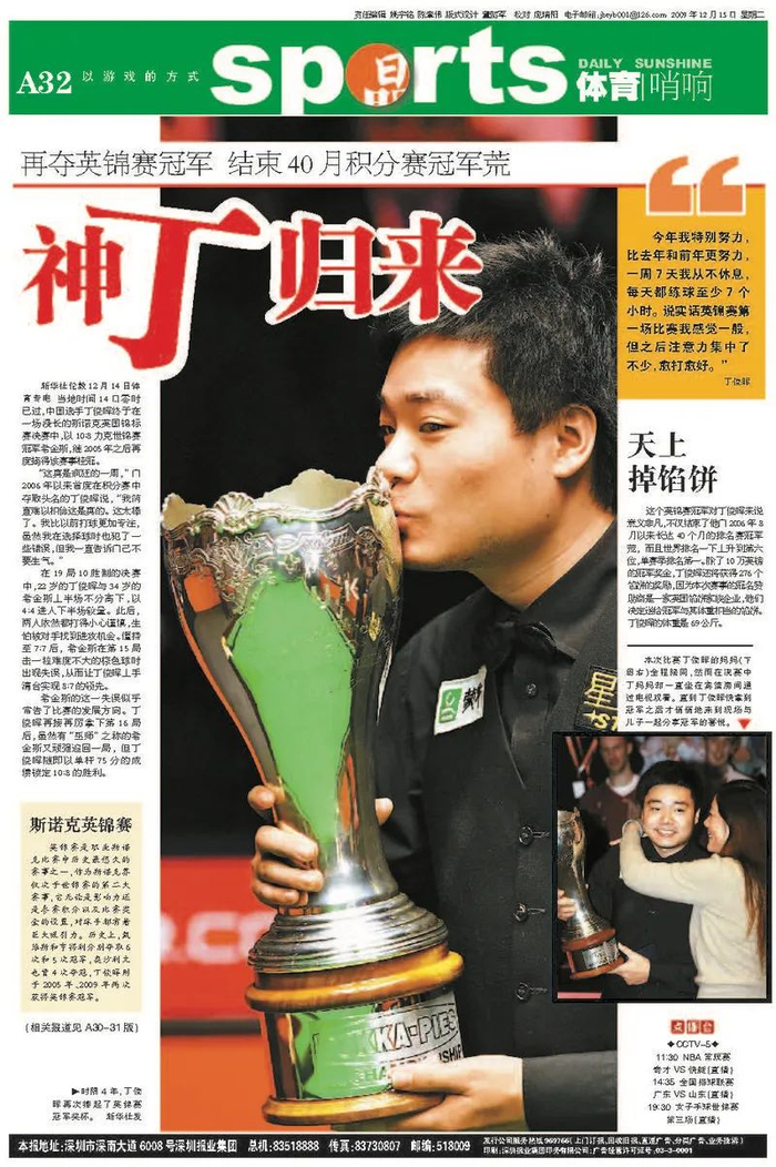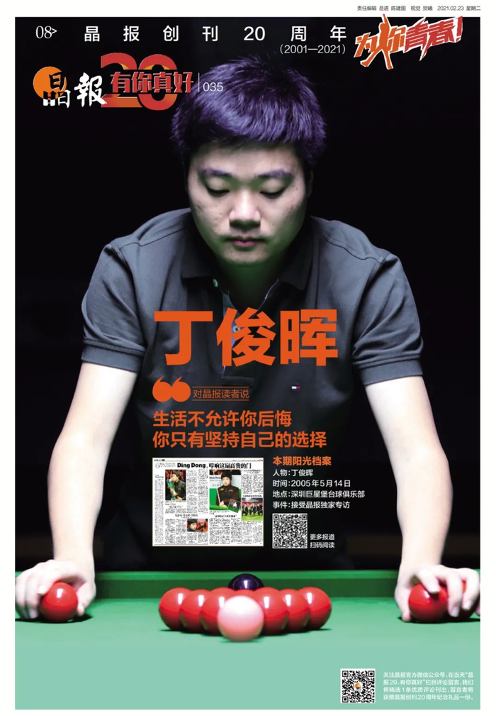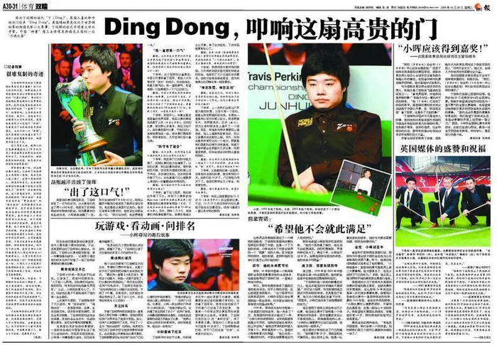 创刊刚刚一年的晶报,在这一年开始,对丁俊晖展开历时十年的追踪报道,十年累计发稿达860篇。