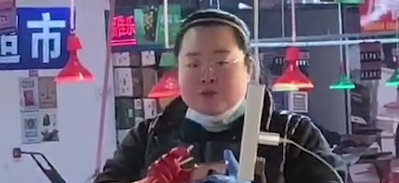 女摊主也举起手机
