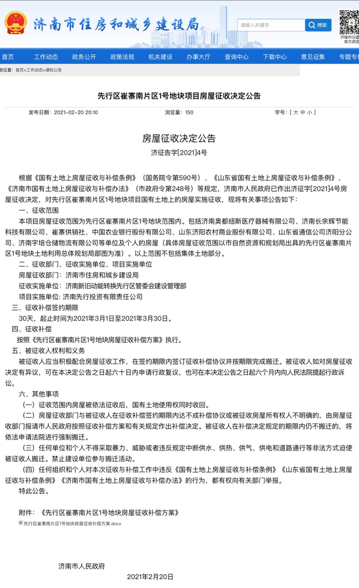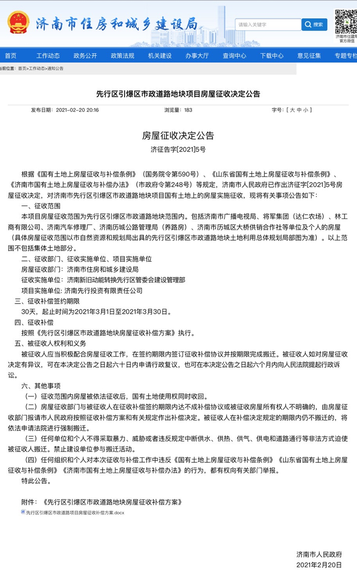 济南先行区两项目征收补偿方案出炉