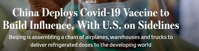 一天后(当地时间21日),美国《华尔街日报》网站刊文《中国部署疫苗扩大全球影响力,而美国正在边缘化》。