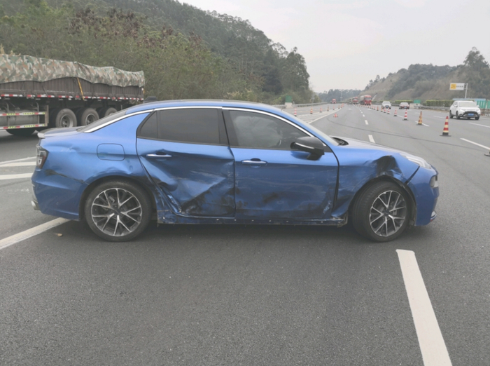 虽说春节长假已经结束,但路面车流量依然很大,身边时不时有车辆呼啸而过,情形十分危险。他没敢停车,夫妻俩商量好,将车辆沿着应急车道慢慢开到前方20公里的宜州收费站下高速路。