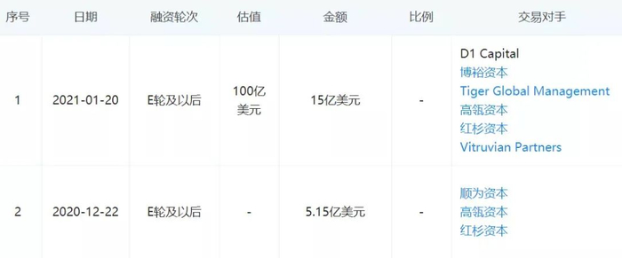 货拉拉则在2020年12月完成5.15亿美元的E轮融资,由红杉资本中国基金领投,高瓴资本、顺为资本等老股东跟投。启信宝显示,2021年1月,货拉拉的F轮融资也即将完成,本轮由高瓴资本领投,总金额达15亿美元。目前,货拉拉已完成共计8轮融资,投后估值将达到100亿美元。