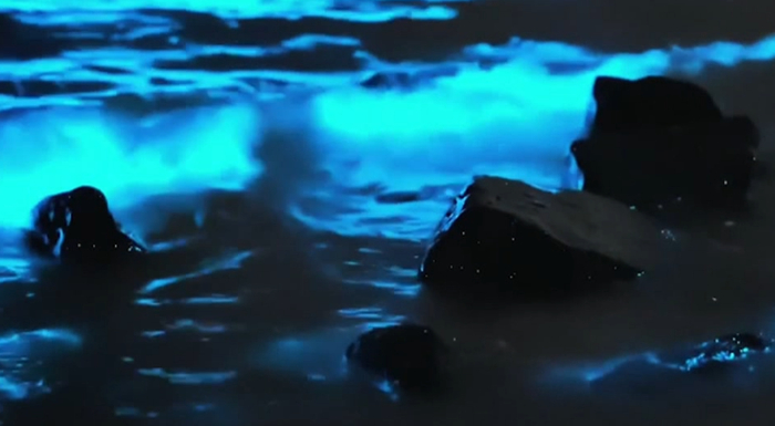 海水就像是被蓝色的火焰点燃了一般