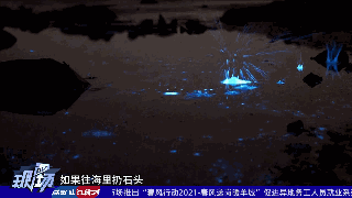 视频中,一道蓝色荧光划破夜色