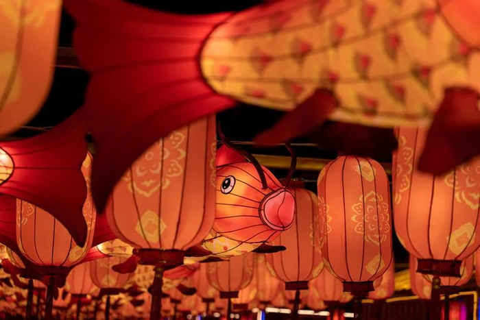 光辉璀璨流光溢彩的悬灯街市里,载着李唐国姓的鲤鱼悠然若游动,带着祥和寓意的团花精致如锦绣。