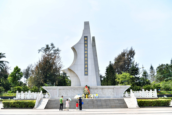 2018年4月6日,清明假期第二天,不少市民冒着高温走进海南省海口市金牛岭公园内的解放海南岛战役烈士陵园,或敬献花圈,或默哀沉思,向革命先烈致敬。人民视觉供图