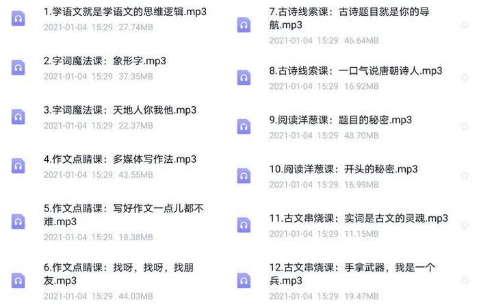 赵旭老师有一百多万粉丝,她的大语文课更是广受欢迎。这套书附赠了12节音频课,可以让孩子随时随地听赵旭老师的大语文课。
