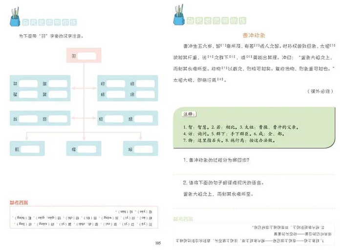 章后还设计了针对性练习题,引发孩子思考、渗透学习思路、巩固所学知识点。