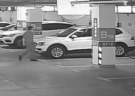 乔某在停车场内四处观望之后,回身走向了驾驶位,发动了车辆。