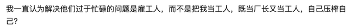 并且在他看来,父母再忙都是自作自受,谁叫他们不请工人,“自己压榨自己”。