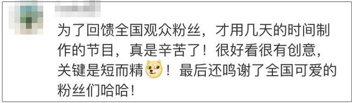 答:节目时间短的重要原因也是因为筹备时间太紧张了,大年初九决定推翻原来的节目计划,从创意到拍摄最终呈现,其实只有五天时间。接下来我们会尽快确认重播计划。