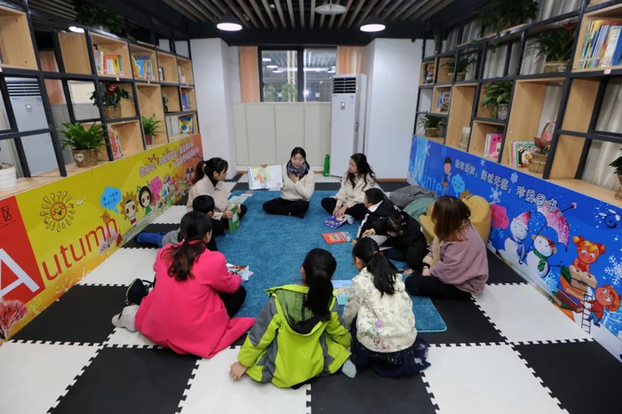 居民在成都市成华区保和街道和美社区文化活动中心参加亲子阅读活动李冬 摄