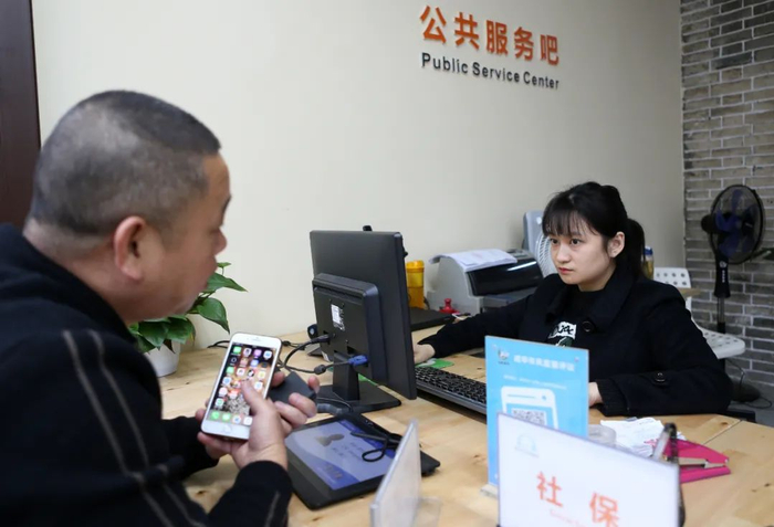 工作人员在成都成华区二仙桥街道下涧槽社区党群服务中心为社区居民提供社保咨询服务 谢秀栋 摄