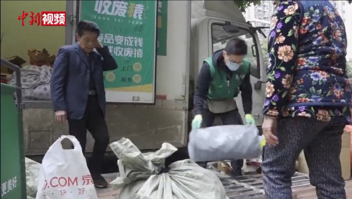 2月26日,在四川成都锦江区一小区外,停靠在路边的废品回收车吸引了附近的居民过来排着队卖废品。废品回收员张泉麻利地接过各类废品,并按照当日的回收指导价结算给居民。让人难以想象的是,眼前这位努力工作的青年是位海归硕士。