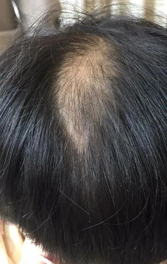 妈妈告诉医生,孩子原来有一头及腰长发,发质很好,又黑又亮。大约半年前的一天,自己辅导她做作业时,突然发现孩子头顶中间,有一片头皮没了头发。
