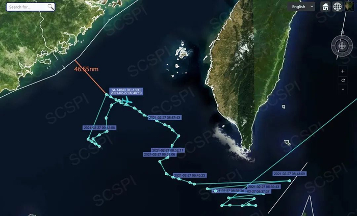 另外,2月27日上午,美空军一架RC-135U型战略侦察机,从冲绳起飞,经巴士海峡前往广东外海侦察,最近距离中国领海基线约为46.65海里,真实情况也许更近。