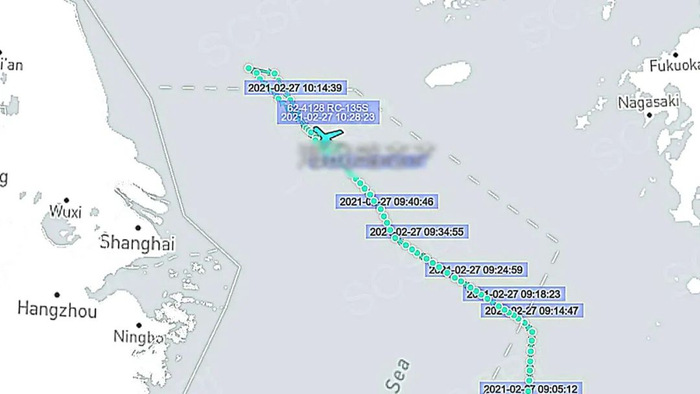 据“南海战略态势感知”计划平台2月27日发布的消息,2月27日上午,美国空军一架RC-135S型导弹监视机从冲绳起飞,穿越东海防空识别区,抵近黄海、东海交界区域进行往返侦察。