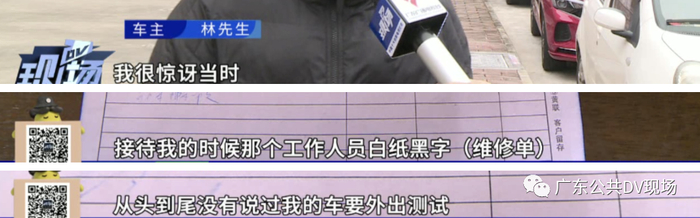 宋经理说,徐师傅是技术总管,具备路试检测资格,对于有没有提前告知车主需要进行路试,林先生和4S店各执一词。
