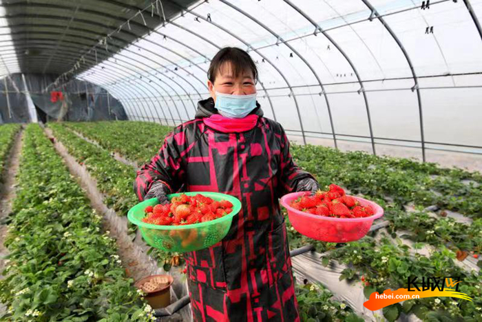 藁城区肥壘果庄园的草莓丰收,农户喜笑颜开。