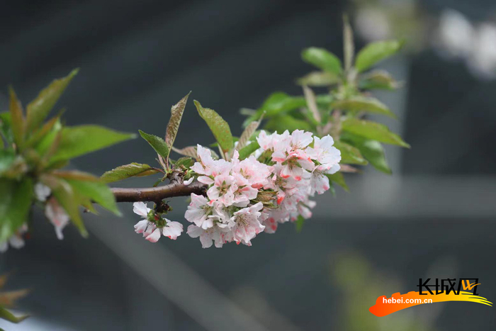 藁城区肥壘果庄园大棚内绽放的樱桃花。