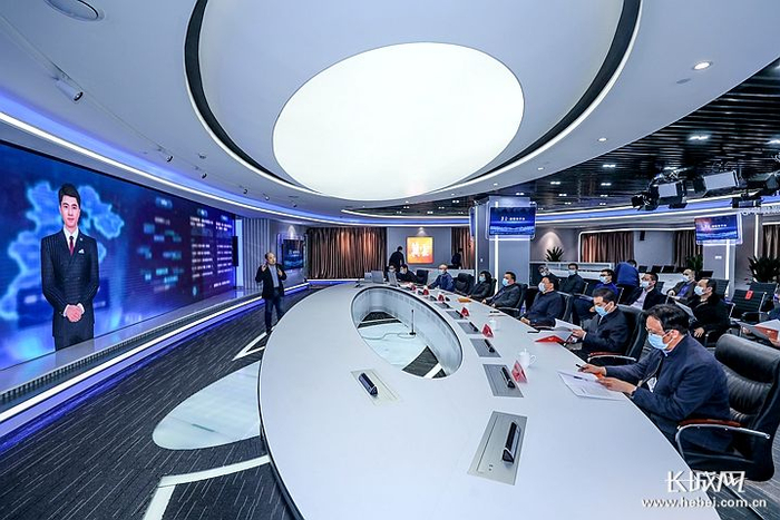 3月2日上午,签约仪式前,马来顺一行在河北广电信息网络集团参观调研。河北广电网络集团严森 摄