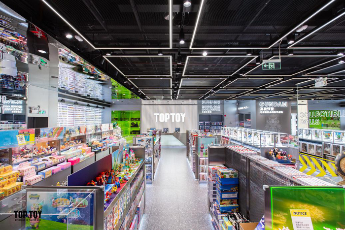 位于广州正佳广场的TOP TOY全球首家旗舰店,门店面积超400㎡,拥有50多个全球超级IP及潮玩品牌,如Hello Kitty、漫威、迪士尼、DC、火影忍者等超级IP,搭积木、置手办、玩拼装等创新互动也精彩纷呈。