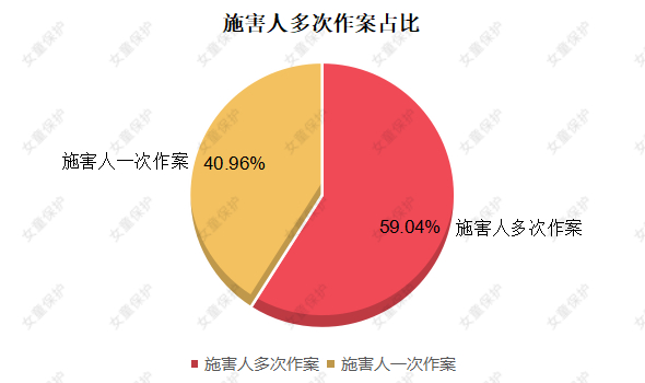 “女童保护”发现,在332起案例中,有196起是施害人多次作案,占比59.04%,包括对同一受害儿童多次性侵,也包括多次对多名儿童多次性侵;施害人一人性侵多人的有92起,占比27.71%。在没有外界力量阻止的情况下,施害人往往多次作案,不会自动终止,持续作案达到2~3年甚至更久。这种现象比较集中地反映在熟人作案中。