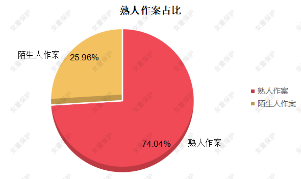 “女童保护”统计,332起案例中表明人际关系的有312起。在312起案例中,熟人作案231起,占比74.04%;陌生人作案81起,占比25.96%。从“女童保护”近几年来发布的报告看,熟人作案比例一直居高,最高比例达87.87%(2014年)。这也与近年来各级法院、检察院公布的数据相印证。