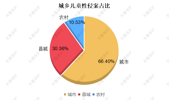 “女童保护”统计,2020年媒体报道的332起性侵儿童案例中,有265起表明了城乡地域分布。在265起案例中,发生在城市的164起,占比66.40%;发生在县城的75起,占比30.36%;发生在农村的26起,占比10.53%。这与往年数据趋势基本一致。可以看出,并不是“只有农村儿童才有遭遇性侵的危险”,无论是城市儿童还是农村儿童,均有被性侵的风险。