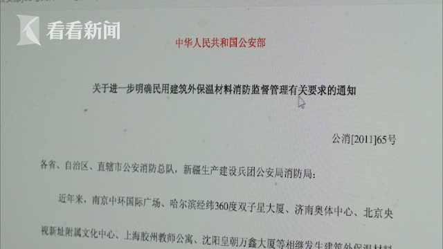原浦江馨都居委会党总支书记叶明官向看看新闻Knews记者介绍:“自从1115胶州路大火事件,也就是2010年后,我们上海市的整个保障性住宅都推广用这种新型材料,也就是防火保温的无机砂浆保温材料。但是,后来检测报告出来一看,考虑就是技术和材质的问题导致大面积脱落。”