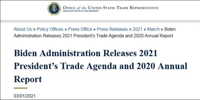 在美国贸易代表办公室的这份最新报告里,中国大陆依旧获得了“重点关注”,报告声称,拜登政府将动用“一切可用的工具”应对中国“不公平的贸易行为”。