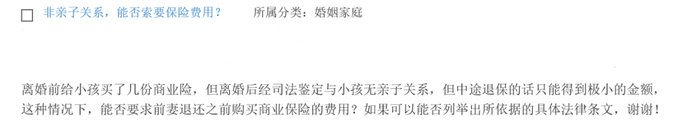 而你前妻向你隐瞒非婚生子的事实,确实存在过错,你支出的保险费也属于抚养子女的支出,对于退还事宜你可先与前妻协商解决,若前妻坚持完全不予返还,你可选择向法院起诉。《民法典》规定:夫妻应当互相忠实,互相尊重。但对于夫妻一方在婚姻关系期间因受骗而抚养非亲生子女所支付的抚养费,另一方应否返还,法律并无明确规定,而在司法实践中,有的法院支持返还,而有的法院则不支持。