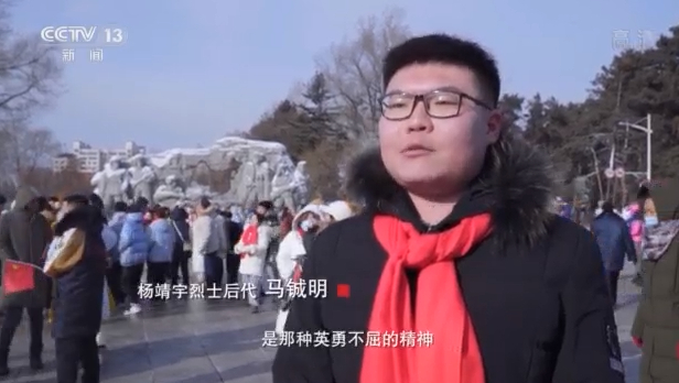 杨靖宇烈士后代 马铖明:曾祖父(杨靖宇)最令我敬佩的,是那种英勇不屈的精神,那份忠贞报过的信念,这是我们的革命家风。他激励着我作为新时代的年轻党员,只争朝夕,不负韶华。