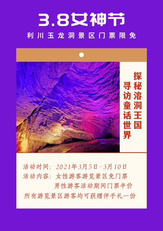 2、非恩施州旅游年卡用户 “三八”妇女节当天女性游客享受半价优惠(22.5元/人)。