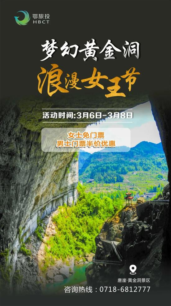 在唐崖黄金洞景区,3月6日至3月8日,全国女士持身份证在唐崖黄金洞景区可享受免票优惠,其陪同人员同时享受半价优惠。
