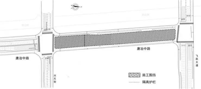 自2021年3月10日起至2024年4月30日,对唐冶中路(兴元街—飞跃大道区间)机动车道进行围挡施工。施工期间唐冶中路(兴元街—飞跃大道)禁止非驻地机动车通行、驻地机动车由南向北单向行驶,非机动车及行人沿西侧慢行道路双向通行。